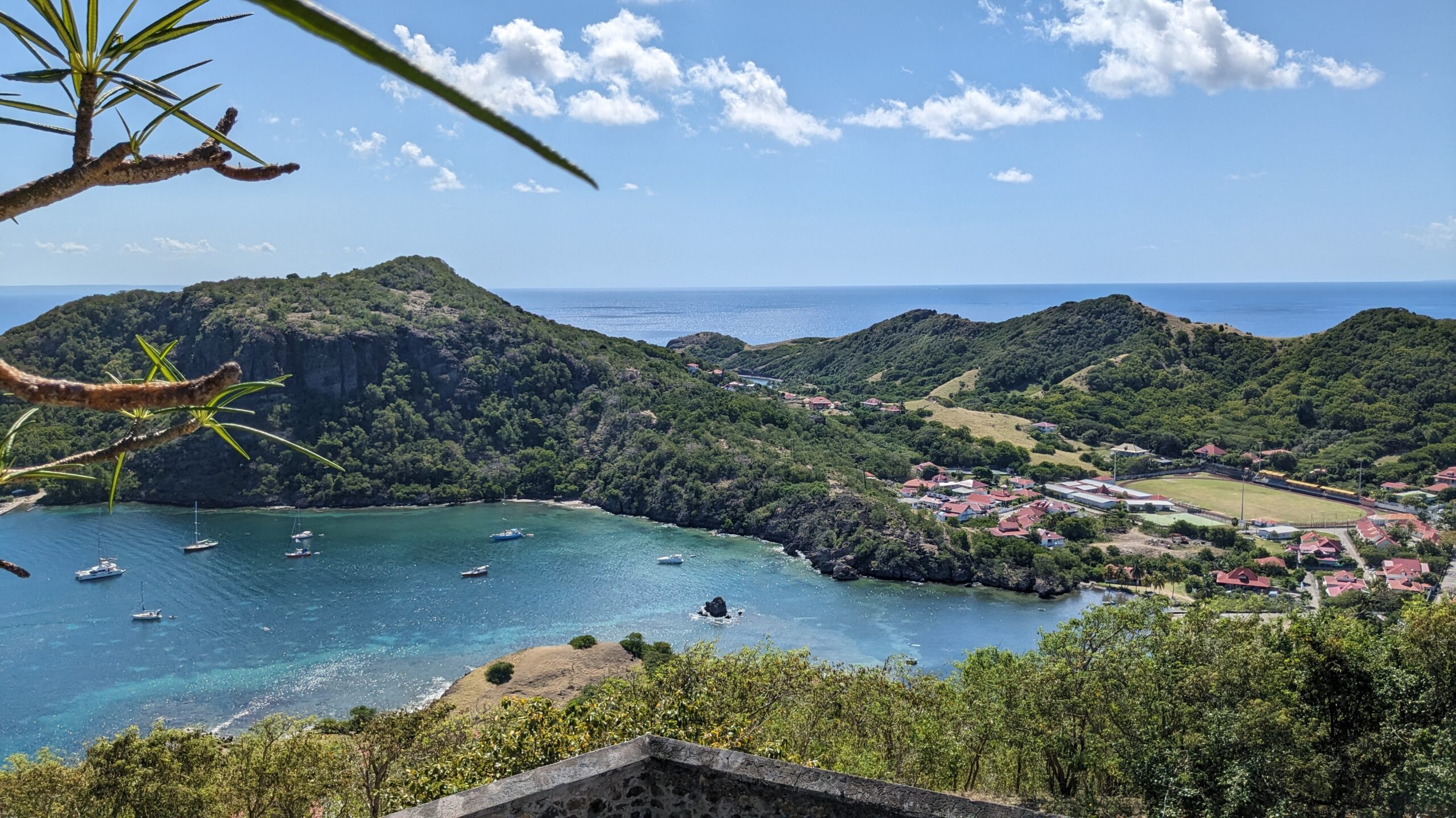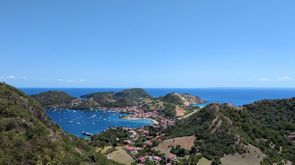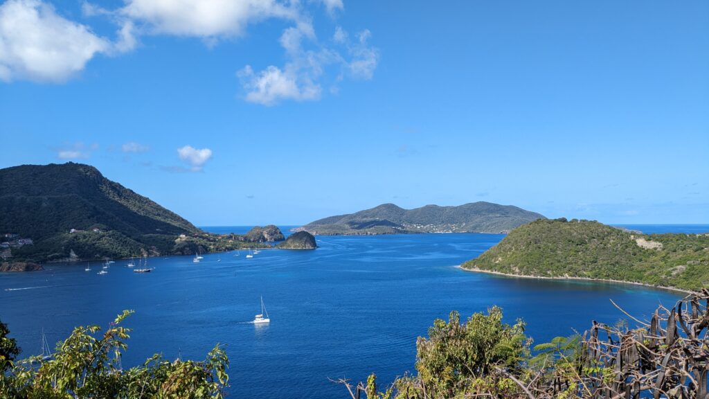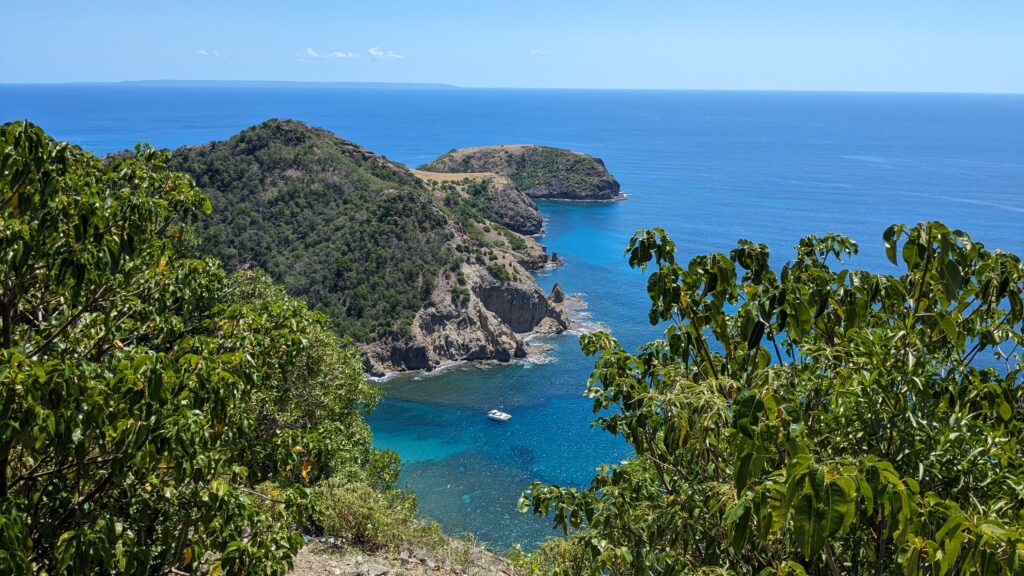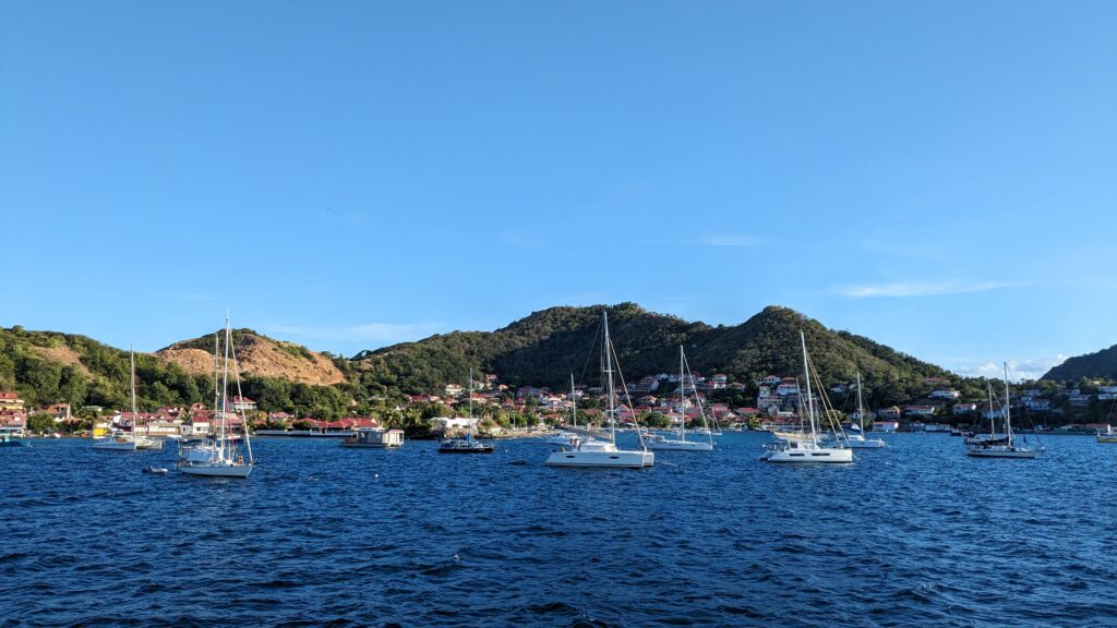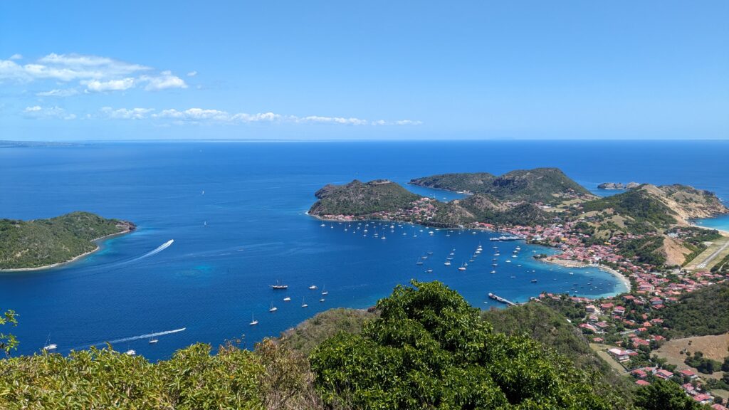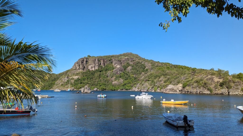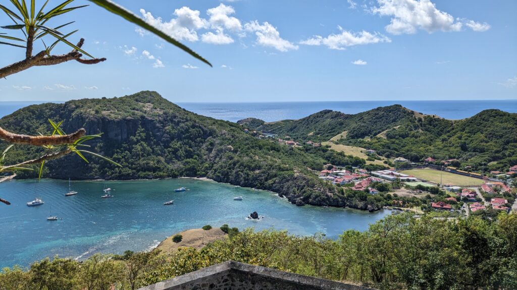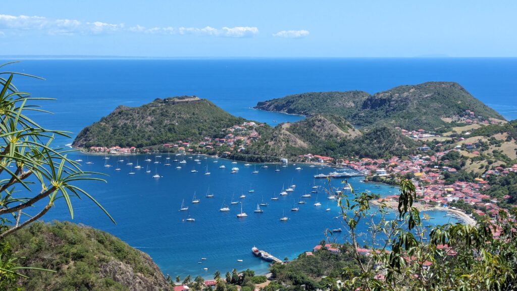 L’archipel des Saintes, situé au sud de la Guadeloupe, est une escale d’exception. Sa baie, classée parmi les plus belles du monde, abrite le charmant village de Terre-de-Haut avec ses maisons colorées et ses traditionnelles barques de pêcheurs. Dominé par le Fort Napoléon, l’archipel séduit par son atmosphère paisible et son authenticité préservée. Pour un panorama à couper le souffle, la randonnée jusqu’au sommet du Chameau est un incontournable, avant de se prélasser sur la célèbre plage de Pompierre, une magnifique anse protégée et bordée de cocotiers.