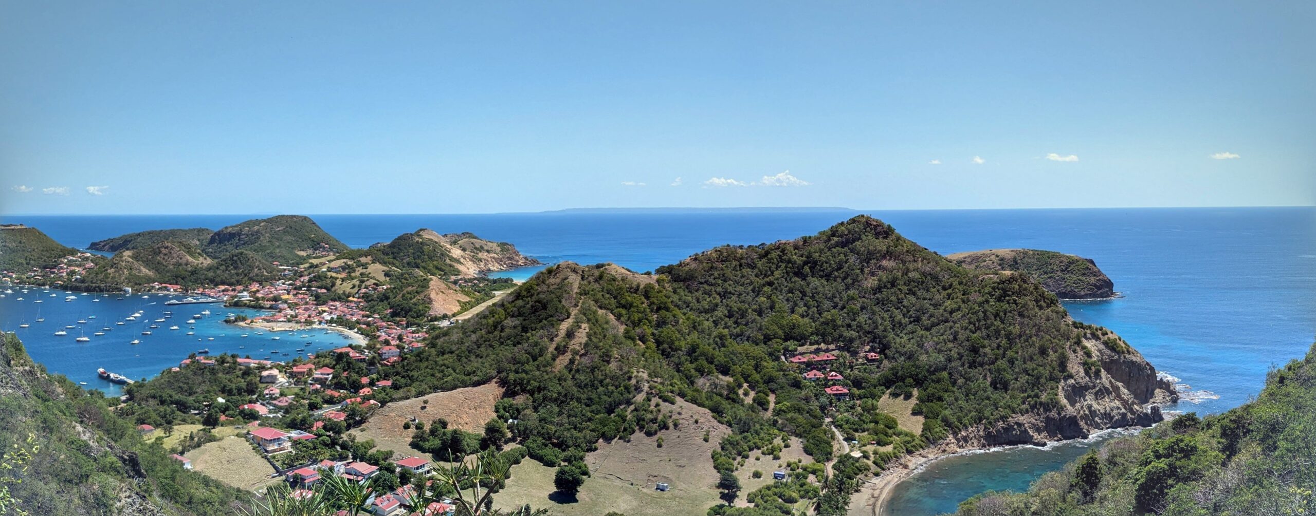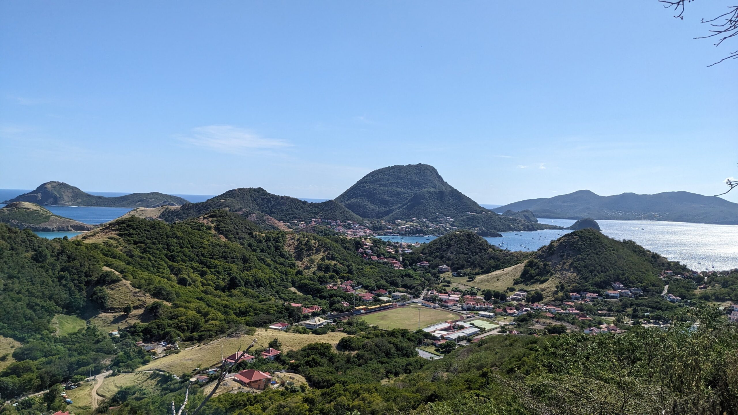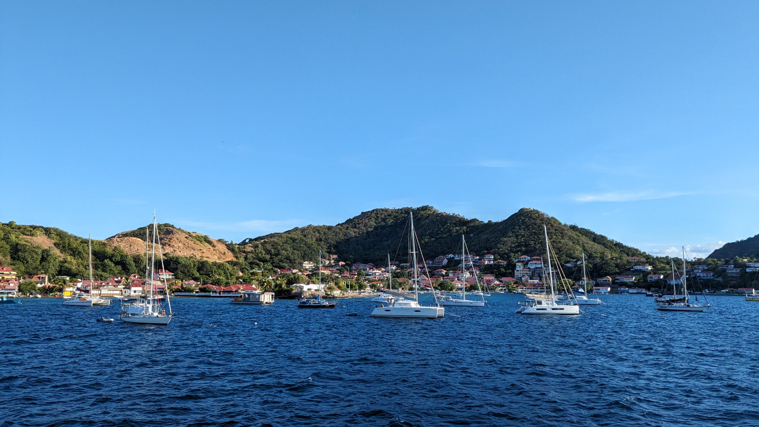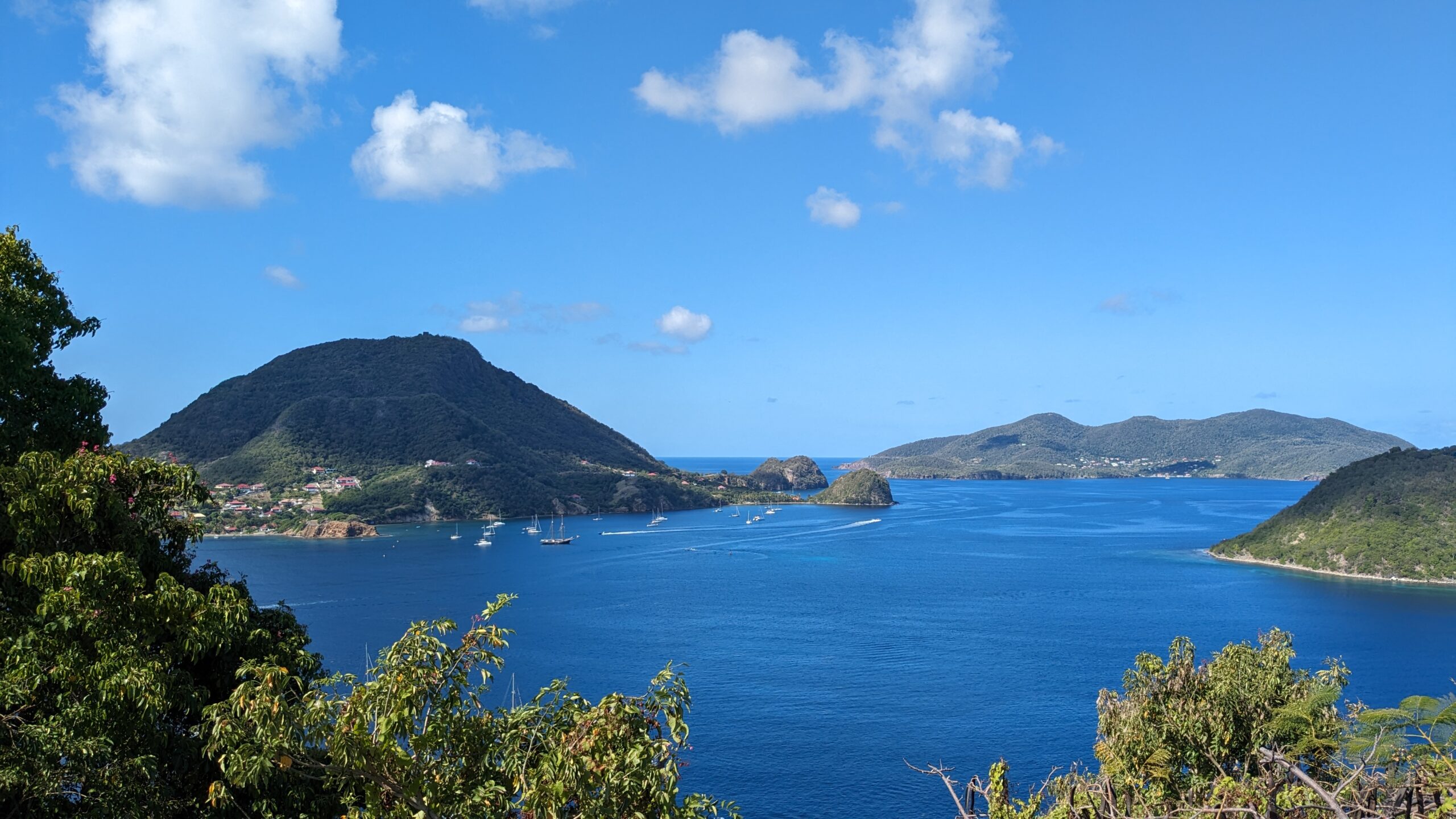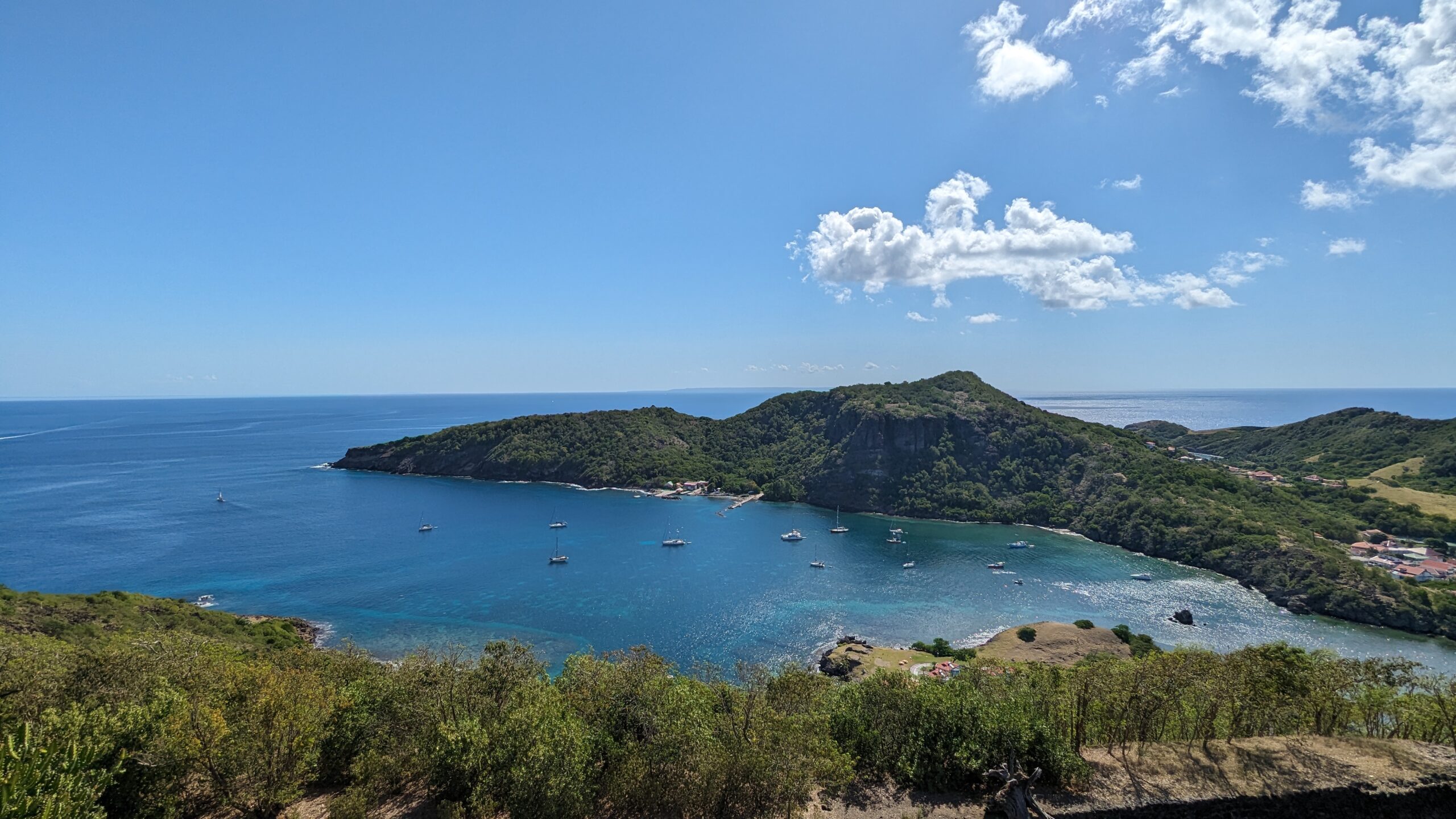 L’archipel des Saintes, situé au sud de la Guadeloupe, est une escale d’exception. Sa baie, classée parmi les plus belles du monde, abrite le charmant village de Terre-de-Haut avec ses maisons colorées et ses traditionnelles barques de pêcheurs. Dominé par le Fort Napoléon, l’archipel séduit par son atmosphère paisible et son authenticité préservée. Pour un panorama à couper le souffle, la randonnée jusqu’au sommet du Chameau est un incontournable, avant de se prélasser sur la célèbre plage de Pompierre, une magnifique anse protégée et bordée de cocotiers.