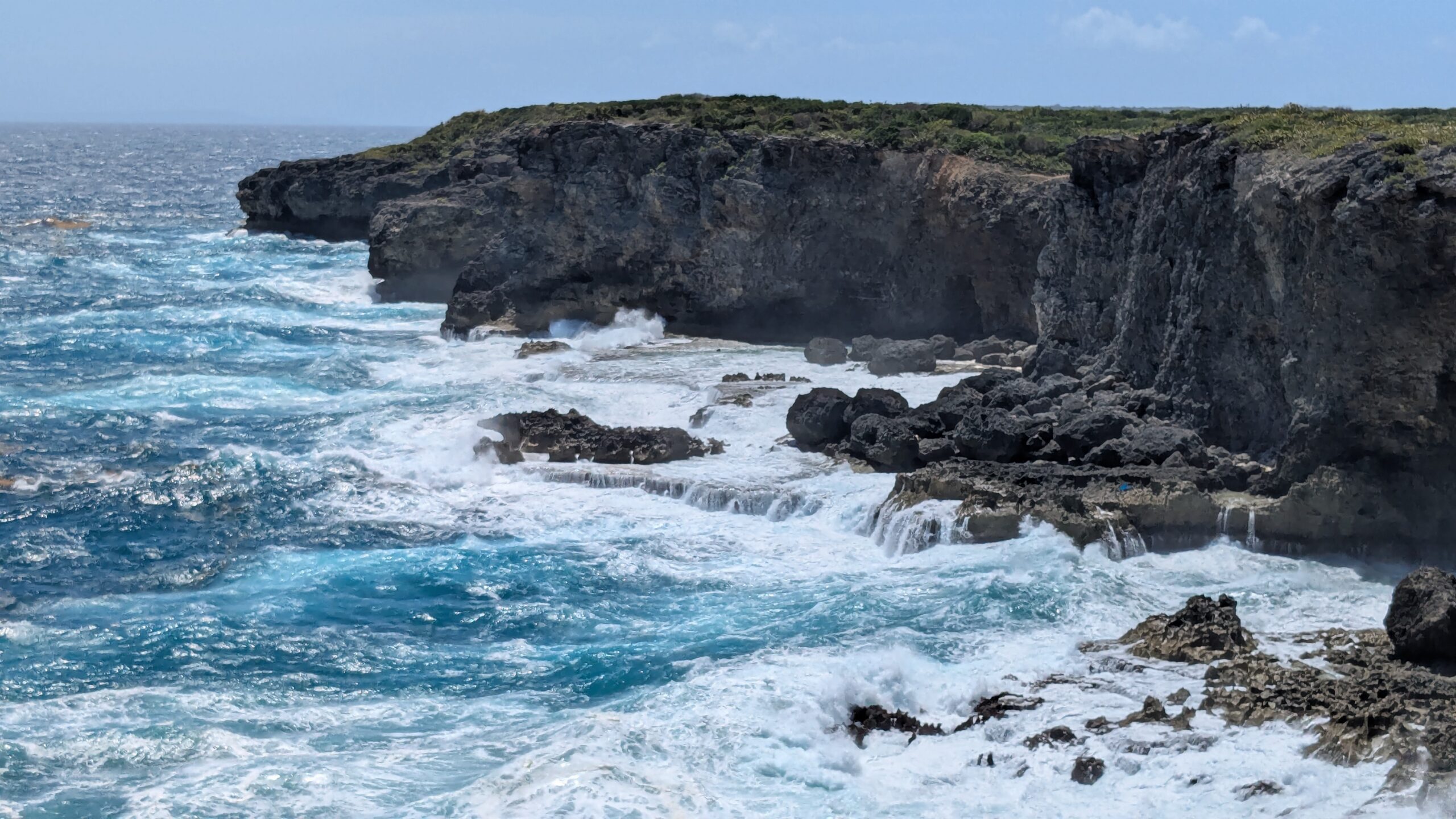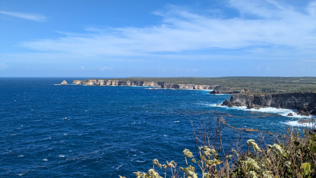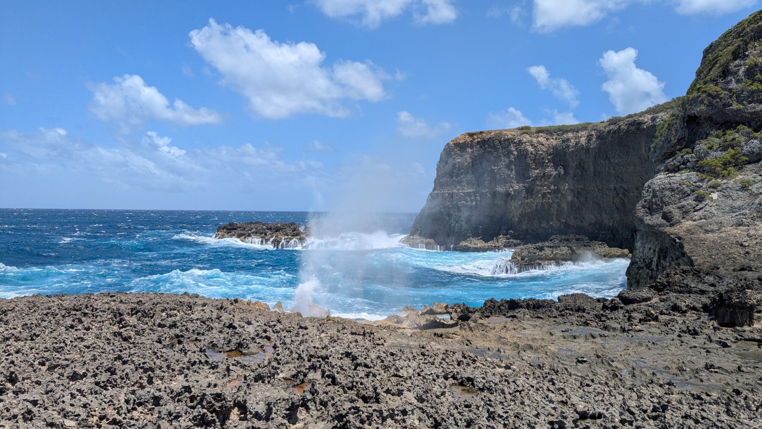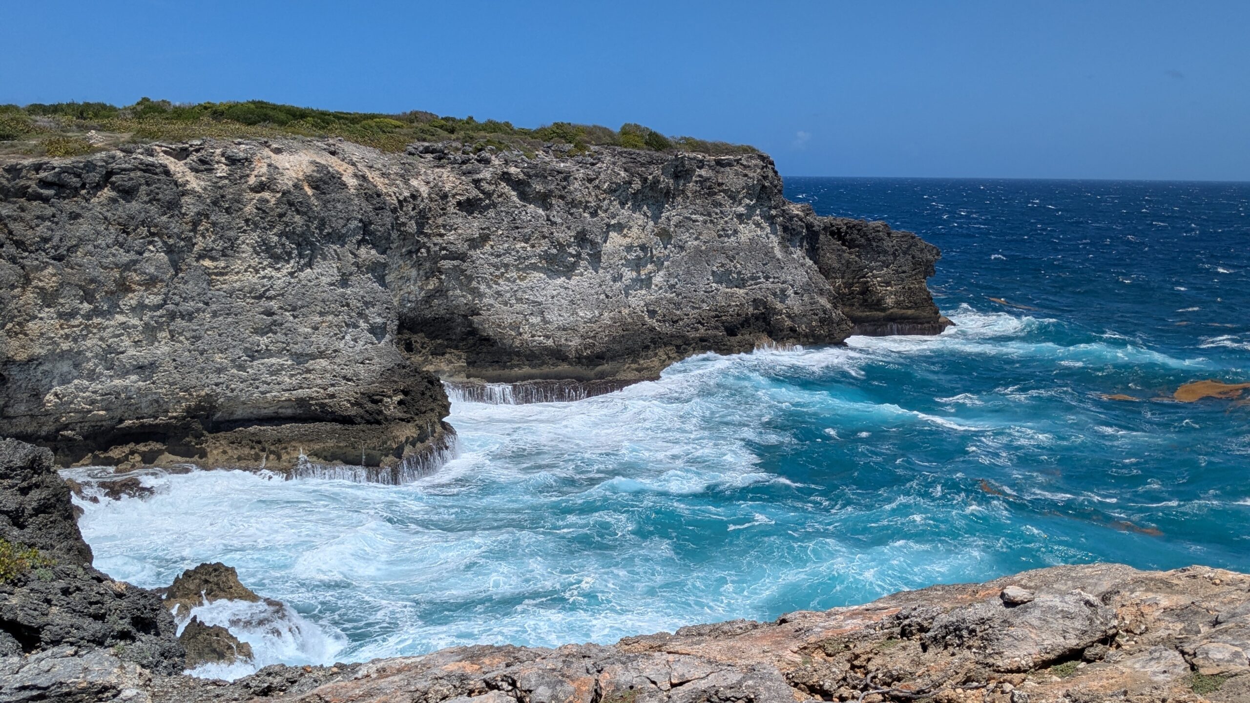 Située sur la côte de la Grande-Terre, la Porte d’Enfer est un joyau naturel de la Guadeloupe. Ce magnifique lagon, aux eaux calmes et turquoise, est enserré par d’impressionnantes falaises qui le protègent de l’océan agité. C’est le point de départ d’une randonnée côtière inoubliable, la trace des Douaniers, qui longe le littoral sauvage. Après une marche spectaculaire au sommet des falaises, le sentier mène jusqu’au site du Souffleur, où l’océan s’engouffre avec une force saisissante dans une cavité rocheuse, créant à chaque vague un puissant geyser maritime. Cette balade offre un contraste spectaculaire entre la quiétude du lagon et la puissance brute de l’Atlantique.