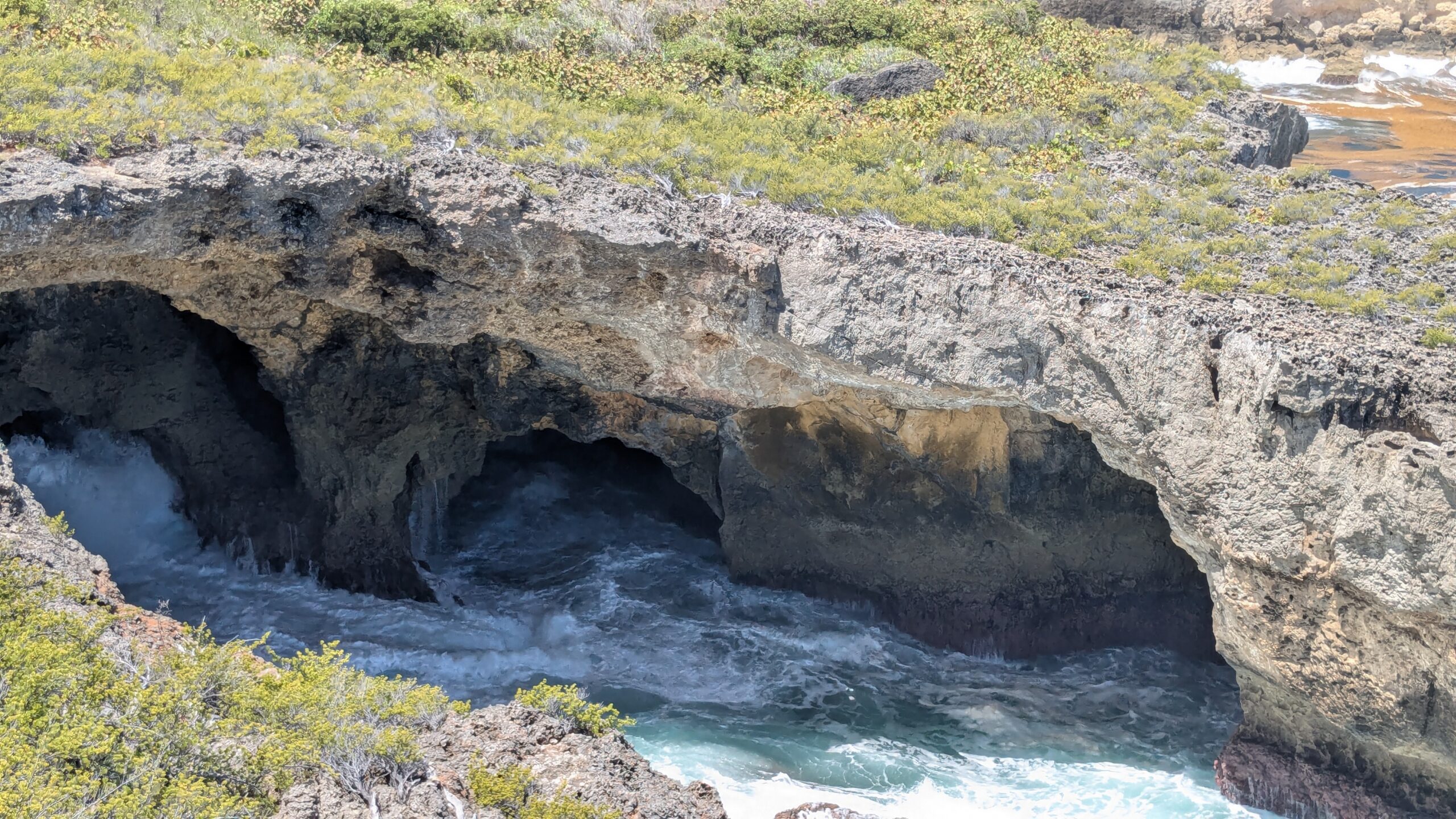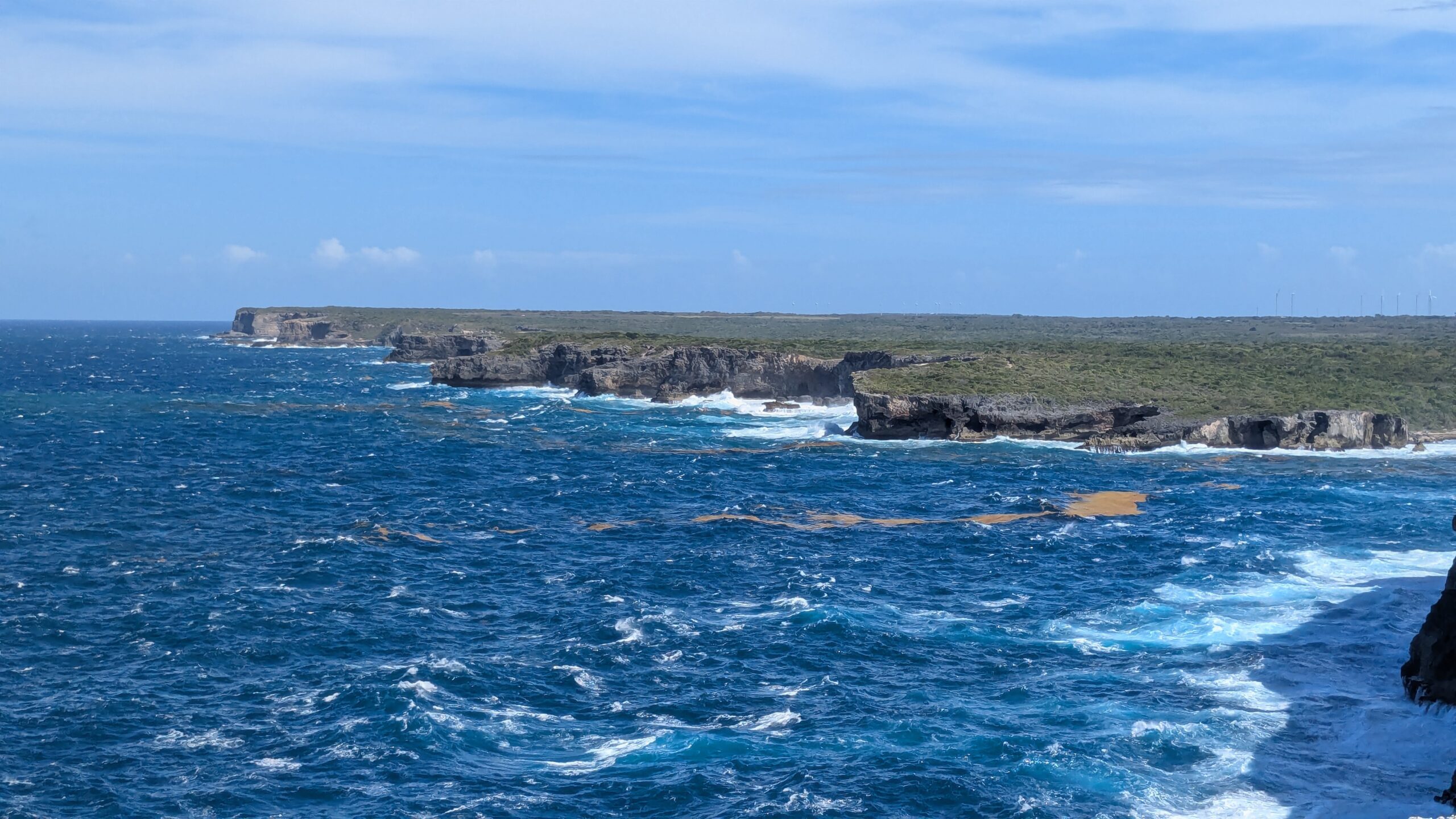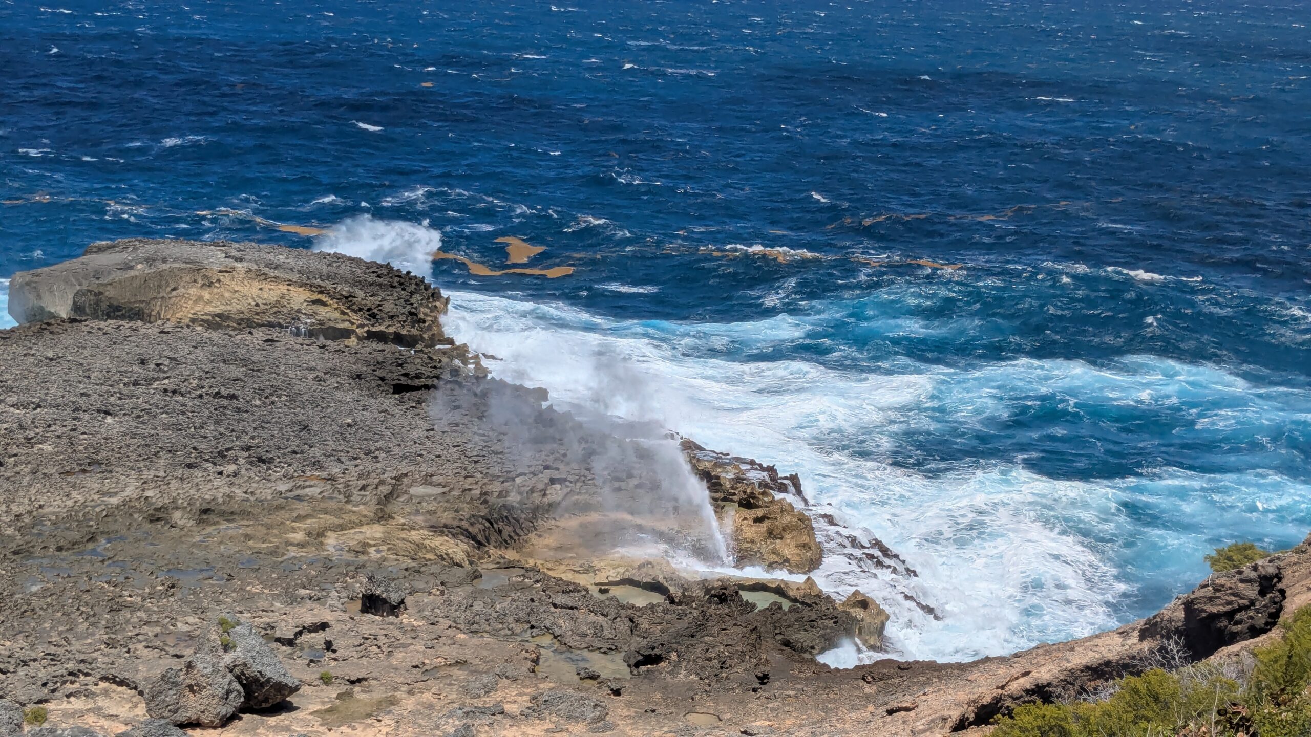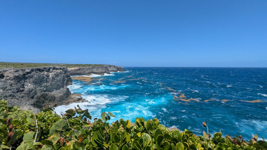 Située sur la côte de la Grande-Terre, la Porte d’Enfer est un joyau naturel de la Guadeloupe. Ce magnifique lagon, aux eaux calmes et turquoise, est enserré par d’impressionnantes falaises qui le protègent de l’océan agité. C’est le point de départ d’une randonnée côtière inoubliable, la trace des Douaniers, qui longe le littoral sauvage. Après une marche spectaculaire au sommet des falaises, le sentier mène jusqu’au site du Souffleur, où l’océan s’engouffre avec une force saisissante dans une cavité rocheuse, créant à chaque vague un puissant geyser maritime. Cette balade offre un contraste spectaculaire entre la quiétude du lagon et la puissance brute de l’Atlantique.