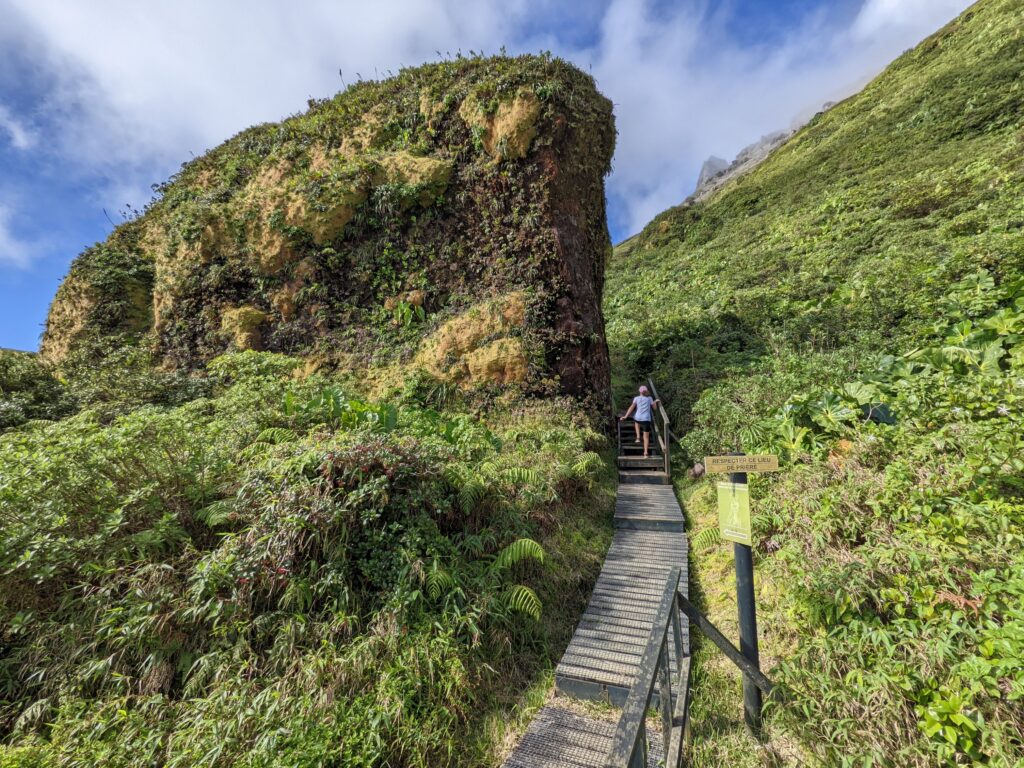 L’ascension de la Soufrière, plus haut sommet des Petites Antilles, est une randonnée mythique en Guadeloupe. Le sentier principal du Chemin des Dames grimpe à travers des paysages lunaires et une végétation d’altitude, menant au cratère où les fumerolles actives et les odeurs de soufre rappellent que le volcan est bien vivant. Pour une aventure plus complète, il est possible de redescendre par le sentier de l’Échelle. Cette boucle, plus escarpée et sportive, plonge les randonneurs au cœur de la forêt tropicale humide, offrant un contraste saisissant avec l’ambiance minérale du sommet. C’est une expérience inoubliable qui combine deux facettes spectaculaires de la nature guadeloupéenne.